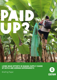 Der deutsche Bericht „Gerechte Löhne auf der Bananenplantage?“ basiert auf unserem englischsprachigen Bericht „Paid up?“, der sowohl die deutschen als auch die niederländischen Supermärkte in den Blick nimmt.